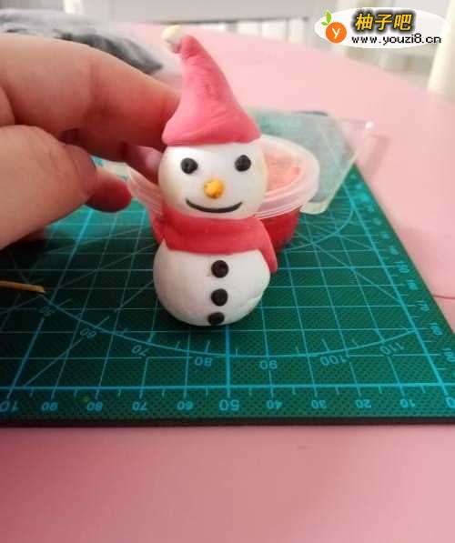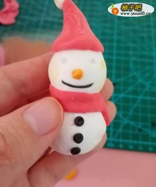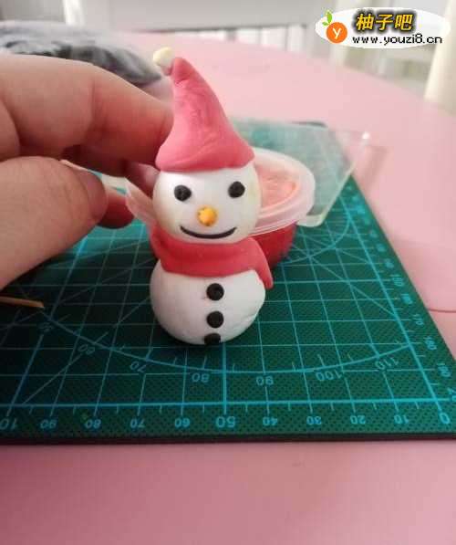 7将做好的雪人趁粘土未干时微微调整,一个简单的粘土雪人就做好了