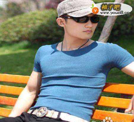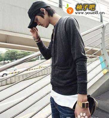 搭配一、灰色平顶帽+海军蓝T恤+黑色裤子