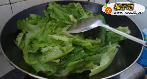 5翻炒莴笋叶的时候,可以有两种选择。一是不放水的干炒,这样火要大些,要不断翻炒,不要粘锅,蔬菜味道脆脆的鲜嫩可口。二是喜欢喝蔬菜汤的朋友可以把火关小一点,放一点水,可以吃蔬菜,喝蔬菜汤。