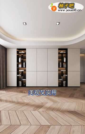 2靠墙打造到顶现代简约书柜,智能弹动门设计,美观又实用。