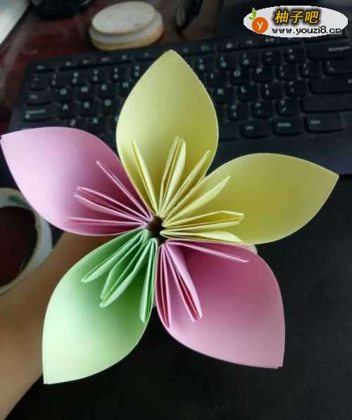手工折纸樱花,简单易学,可以单独观赏,也可以更多花瓣进行组合。
