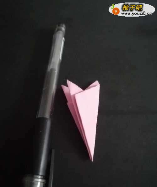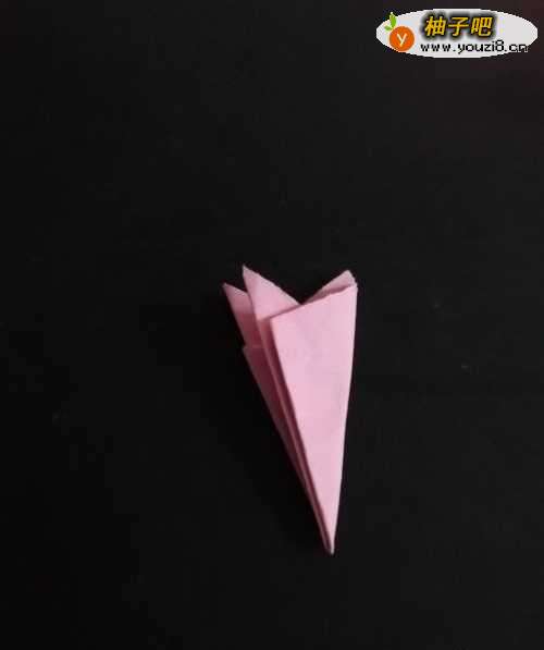 4第四步,把右边部分继续向左边部分折叠,开口部分在左边。