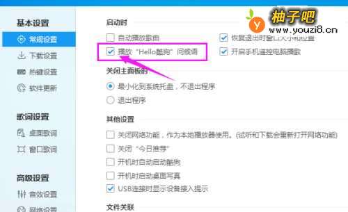 6去掉【播放“hello酷狗”问候语】前面的√,点击右下角【应用】,让设置生效。