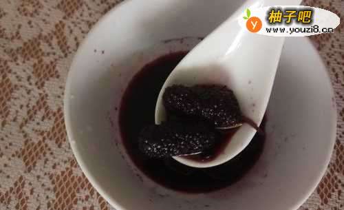 5待桑葚晾凉后,可以直接食用,汤汁直接饮用或冲水饮用。甜度可以根据个人口味兑水饮用。