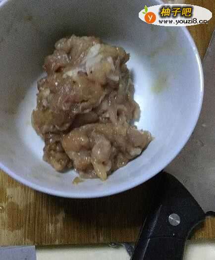 3肉切丝,可以在这里加瘦肉粉和酱油先调,也可以不用加瘦肉粉,炒肉的时候加点酱油就行了。