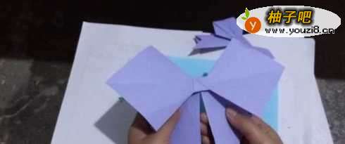 6翻过对折,然后塞进中间的方格中,修剪蝴蝶结,个人即兴发挥。