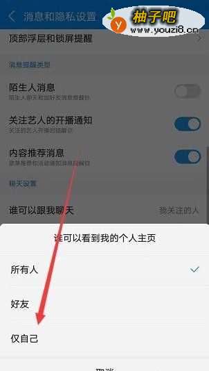 6我们直接选择 仅自己,这样别人就无法再查看到你的个人主页啦,如下图
