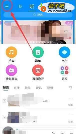 首先打开手机酷狗音乐,进入到首页之后点开左上角的 三横杆,如下图