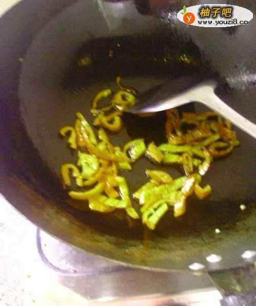 3先把辣椒炒一下,然后把辣椒先放一边,一会用。如下图所示。