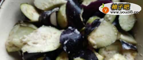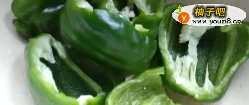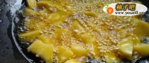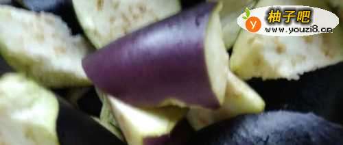 9分别把土豆块、茄子块、青椒块过油炸。土豆和茄子要多炸一会,青椒炸一下就捞出不要久了。