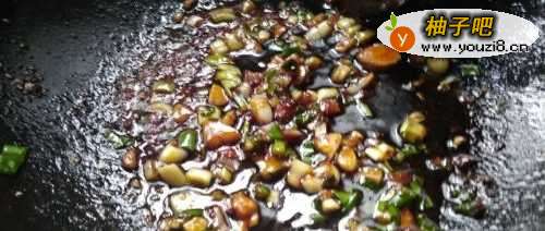 11锅内留底油,加入葱姜蒜爆香,加入生抽,盐。