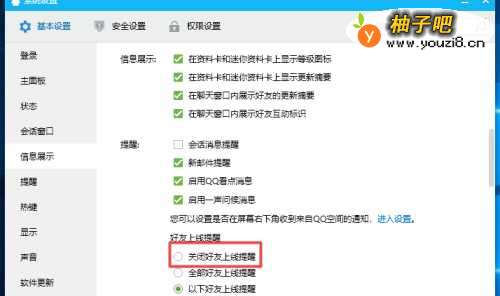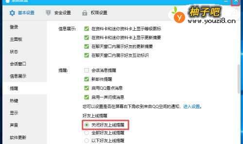 6弹出的界面,我们点击关闭好友上线提醒;