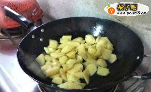 3然后“花”的一声,漫山遍野的土豆掉进了黑锅漫山遍野的块啊土豆啊,厨房也要讲究节约和环保,所以要给黑锅加盖加盖的目的当然是为了“降火”啦,把灶火调低稍过1分钟或更多,进行搅拌,让土豆们不能物以类聚,而是要雨露均沾然后再加盖,如此往复。