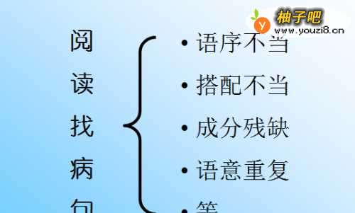 首先我们需要阅读句子,找到病句的原因,病句的常见原因分如图几种。