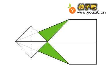 3翻转到背面,仍然将两个斜边折到中心线重叠处