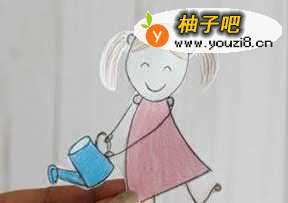 33.将女孩剪纸粘在纸盘上,用黑色或蓝色记号笔画出从喷壶里流出的水滴。