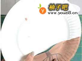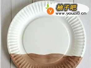 55.小心地用小刀沿着土壤边缘在纸盘上划一条缝隙,以便雪糕棍与花朵可以穿过它。