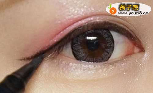 3画眼线。画眼线可以用眼线笔也可以用眼线液。这个看个人喜欢用哪种,不过小编建议初学者最好用眼线笔,化错了用棉签擦掉就可以。眼线分内眼线和外眼线。内眼线给人的感觉比较自然,外眼线可以起到放大眼睛的视觉效果。化妆时也可以选择化很细的外眼线使眼睛看起来更有神。