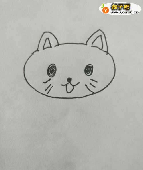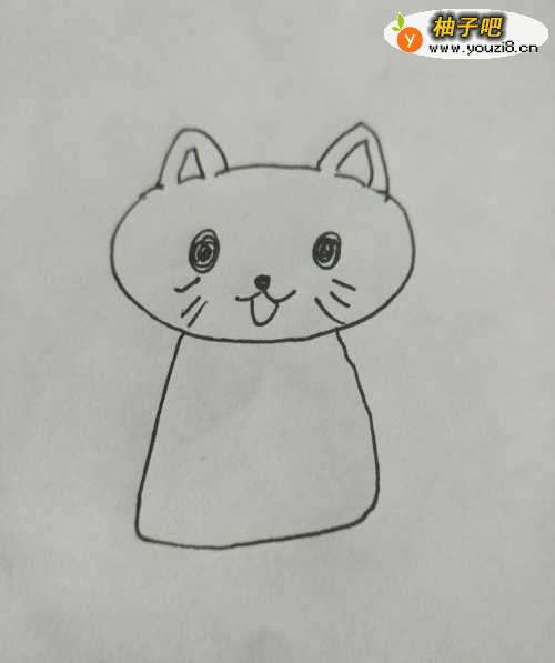 4第四步,在鼻子下面把小猫咪的嘴巴画出来。