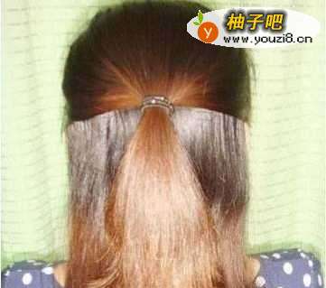 11.将头发上面1/3扎起来。