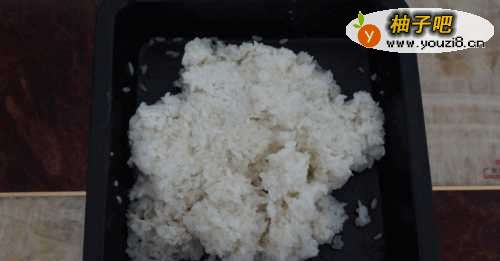 3在器皿中铺上保鲜膜,为了之后方便取出,放入米饭用力压紧、压实,放置阴凉处彻底冷却。