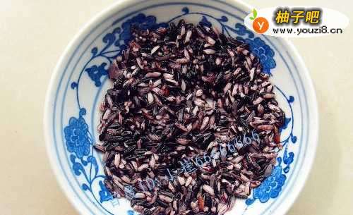 3紫米要挑选粒粒饱满的比较好,将准备好的紫米清洗干净。