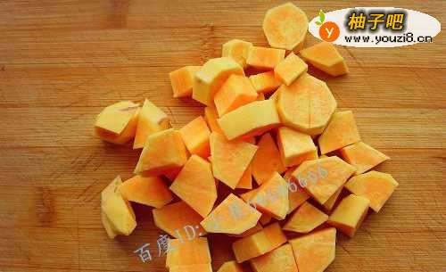 6大火转小火,大约炖一个小时,加入准备好的红薯和冰糖一起炖。