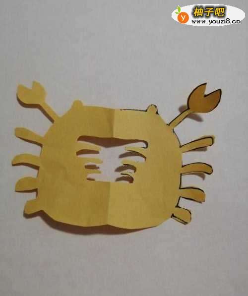 8第八步,最后把剪裁出来的螃蟹整理好展开。可爱的螃蟹就剪裁出来了。