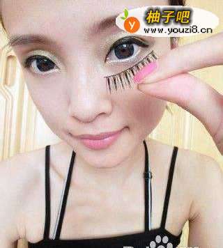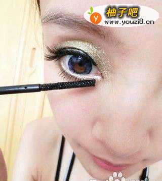 13上下睫毛都贴好之后 再拿睫毛膏刷一下 让2者更好的结合