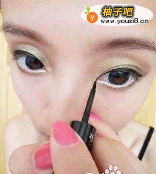 6再用4号高光色来进行高光的处理 画在下眼皮睫毛根部和内眼角部分,整个眼睛感觉瞬间放大了一倍哦