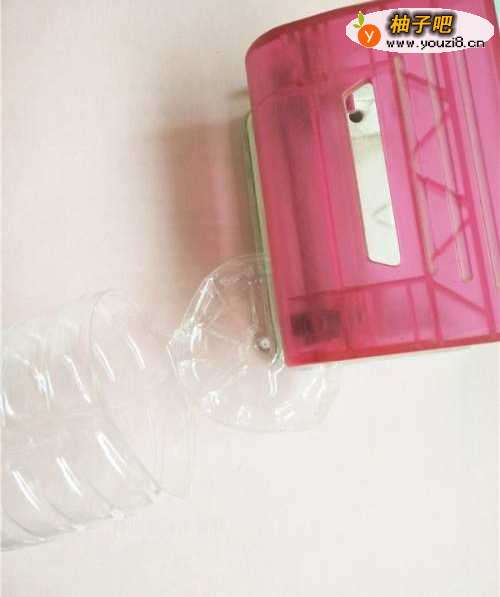 3将饮料瓶底部边缘折一下,用打孔器在上方打一个小孔。