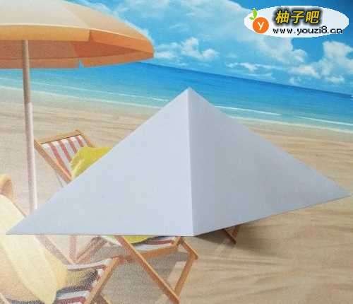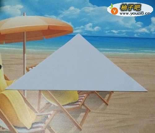 3第三步:将三角形形状再次对折,如下图所示
