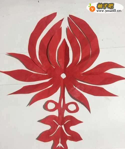 6第六步 剪完外围之后 再剪去每个花瓣之间的镂空部分 还有须子叶子之间的空白 剪完之后取开铺平就行了