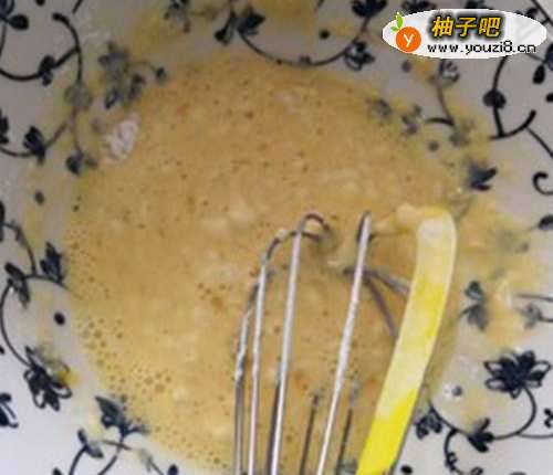 3鸡蛋和面粉稍微搅拌,加入清水,边搅拌边加水,最后加葱花。