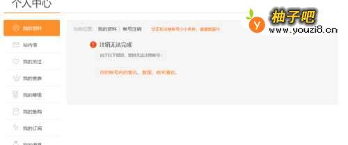8如果出现注销无法完成的情况,则小伙伴们需根据给出提示进行操作,然后再次注销,即可成功注销账号。