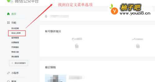 3点击登录进入到你个人的微信公众号后台之后,我们在左侧的功能选项中找到“自定义菜单”这个选项。