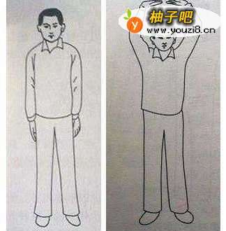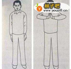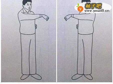 第二,左手在上,右手在下,动作要领同第一,再呼吸5~10次。共做3~5遍。