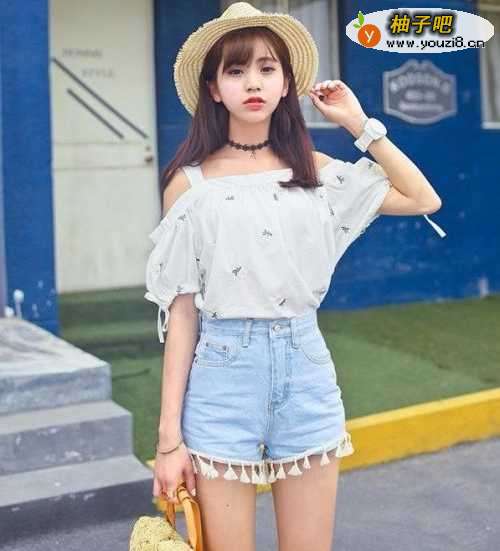 搭配四:露肩衬衫+牛仔短裤牛仔短裤相比大家都再熟悉不过了,是我们夏季的必备单品,搭配各种风格的上衣,搭配一件露肩衬衫也是很休闲、大方的。