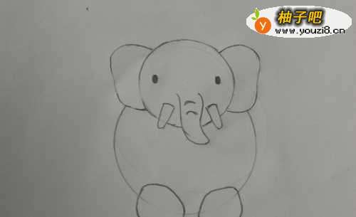 4我们把大象的眼睛和两根长长的象牙画上,如图。
