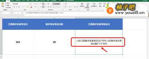 3第三步,接着用“江西美术生高考总分”乘以“50%”。
