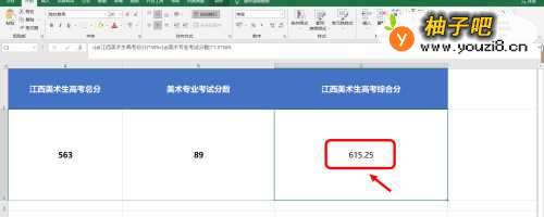 5第五步,最后按“Enter回车键”确定,计算得出江西美术生高考综合分。这样就好了。