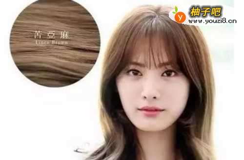 亚麻色的染发显白减龄,同时还让人更富有青春感,另外配上一个齐刘海给人一种清纯感。