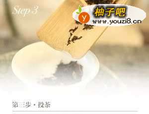 3投茶:将普洱茶轻倒入盖碗和紫砂壶里。