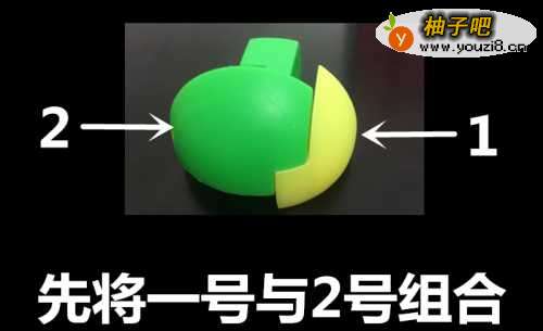 1:将模块按凹凸顺序编号摆好,最细的一块放最后。2:先组合三个凸出的模块。3:再组合两个有凹口的模块。4:插入以后一个模块。