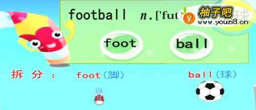 趣味记忆:用脚(foot)踢的球(ball)是足球(football)。