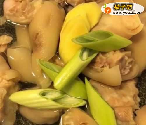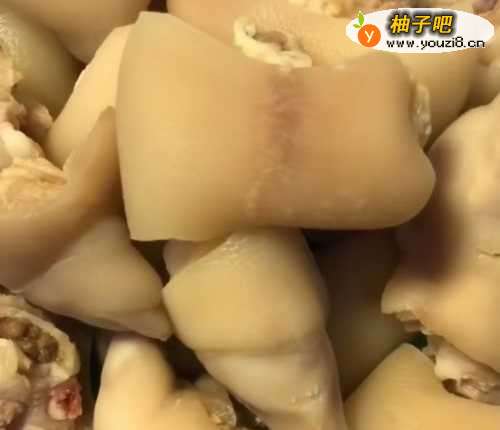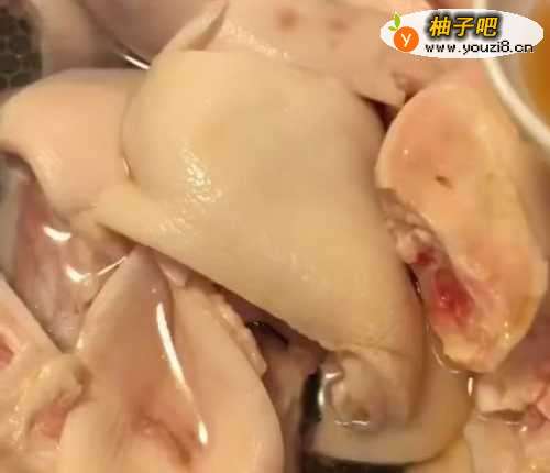 准备猪脚两只,剁大块,冷水下锅,放料酒煮出血末。