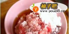 1勺料酒 1勺糖 1勺淀粉 1勺生抽 抓匀 先把肉碎腌制10分钟