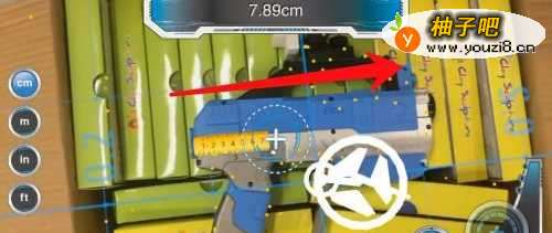 6屏幕上方出现玩具枪的长度,左侧是不同测量单位,可以进行切换。同样方法可以测量玩具枪的宽度。