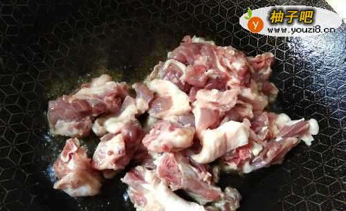 2热锅冷油(菜籽油)放鸭肉并翻炒