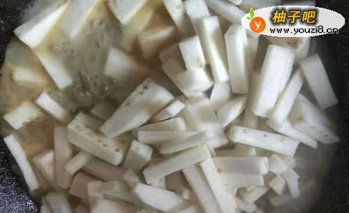 此时应该大火改为小火,盖上锅盖闷一小会,慢慢准备收汁,再放入姜丝,葱末,这样会更香